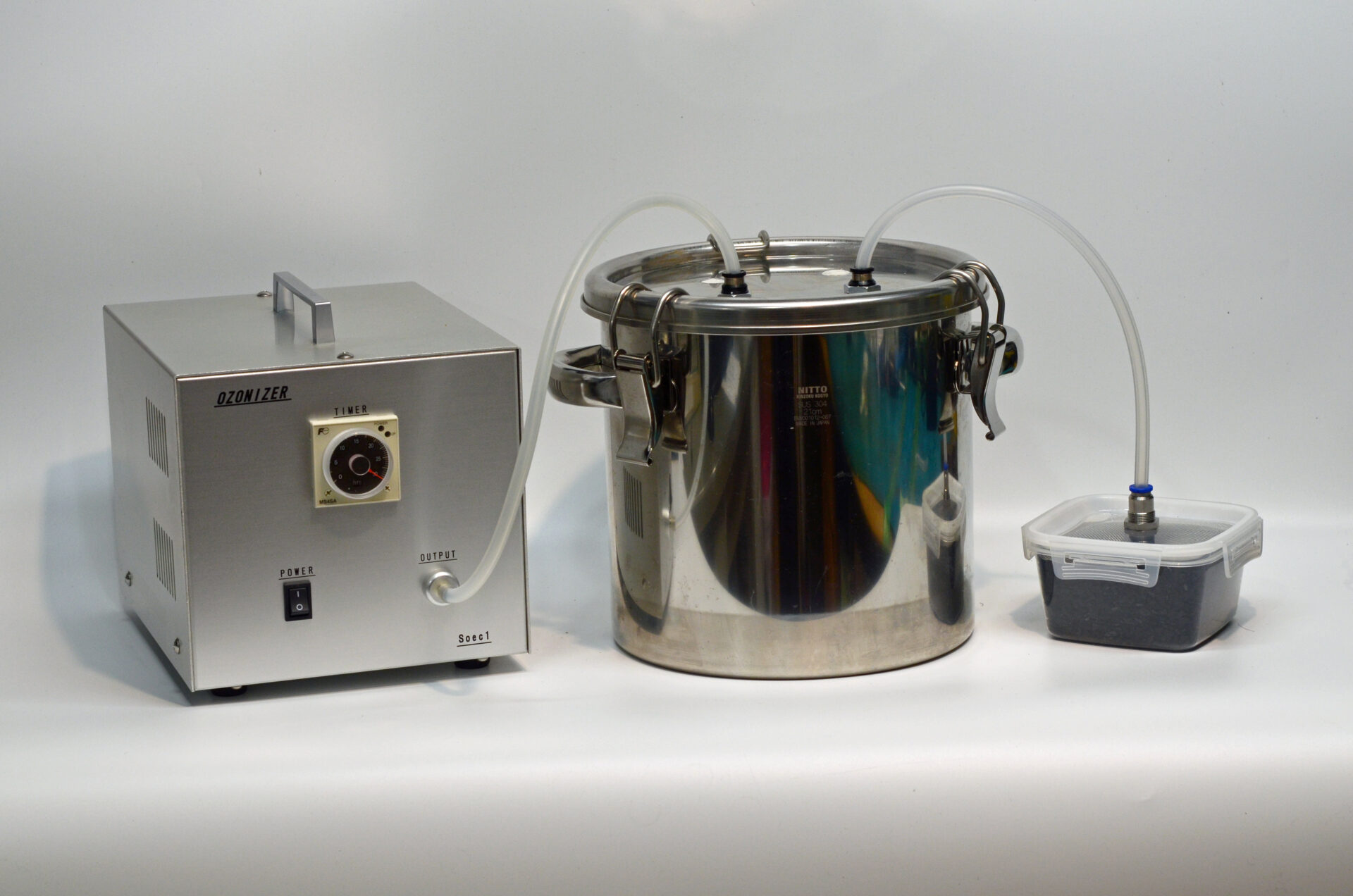 オゾン発生器 Soec410 と 殺菌・消臭容器 SD-Box、そして安全にオゾンを分解する オゾン分解BOX がセットになった、